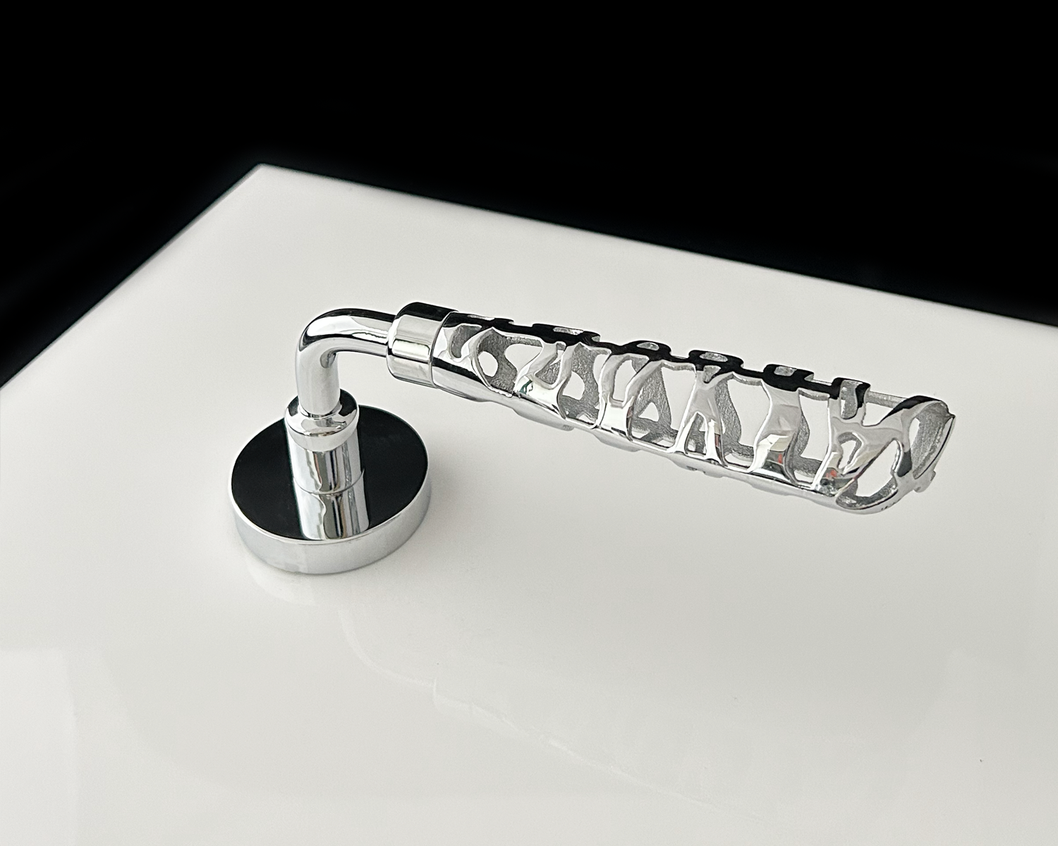 Legame 3D interior door handle is a uniquely designed handle, a pure expression of sensitivity inspired by the irregular pattern of a handmade fishing net.