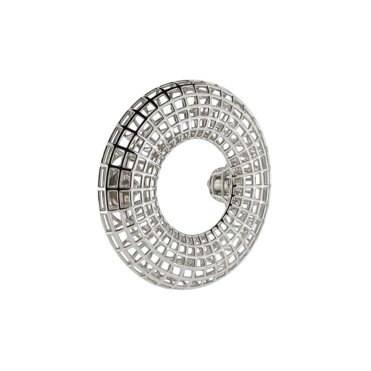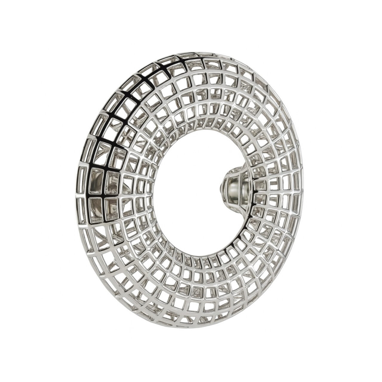 Il suo design è definito da una trama tridimensionale di pieni e vuoti, realizzata con la Reticube Technology®, che crea un affascinante effetto visivo di leggerezza e trasparenza. Un intreccio sinuoso che cattura la luce e invita a guardare attraverso la materia.