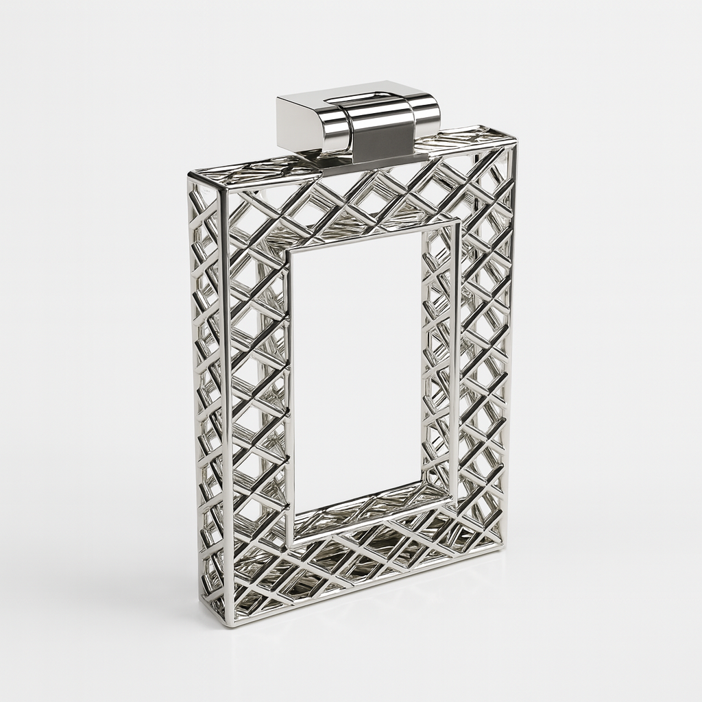 La struttura dell’impugnatura, realizzata in trama a gabbia tridimensionale, nasce dalla Reticube Technology®, che intreccia fili di ottone in una maglia a rombi. Il risultato è un suggestivo gioco di pieni e vuoti, luci e ombre, dove tradizione artigianale e innovazione tecnologica si incontrano.