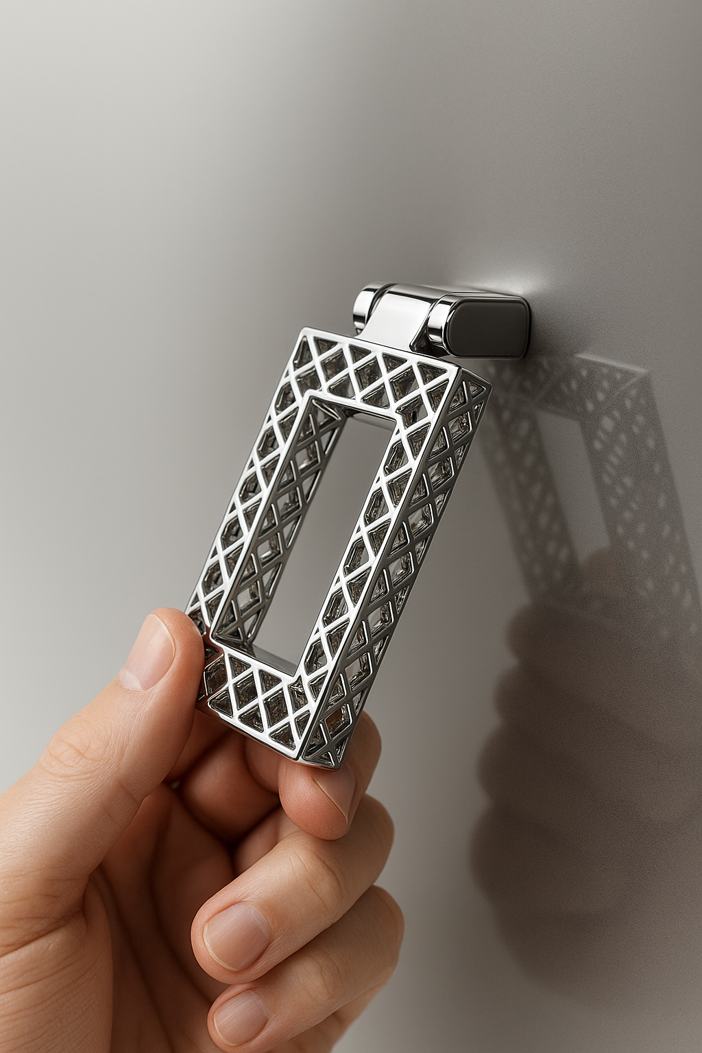 Maniglia per mobile 3D Reticube Technology, 100% Made in Italy con gabbia con la speciale gabbia a rombi.