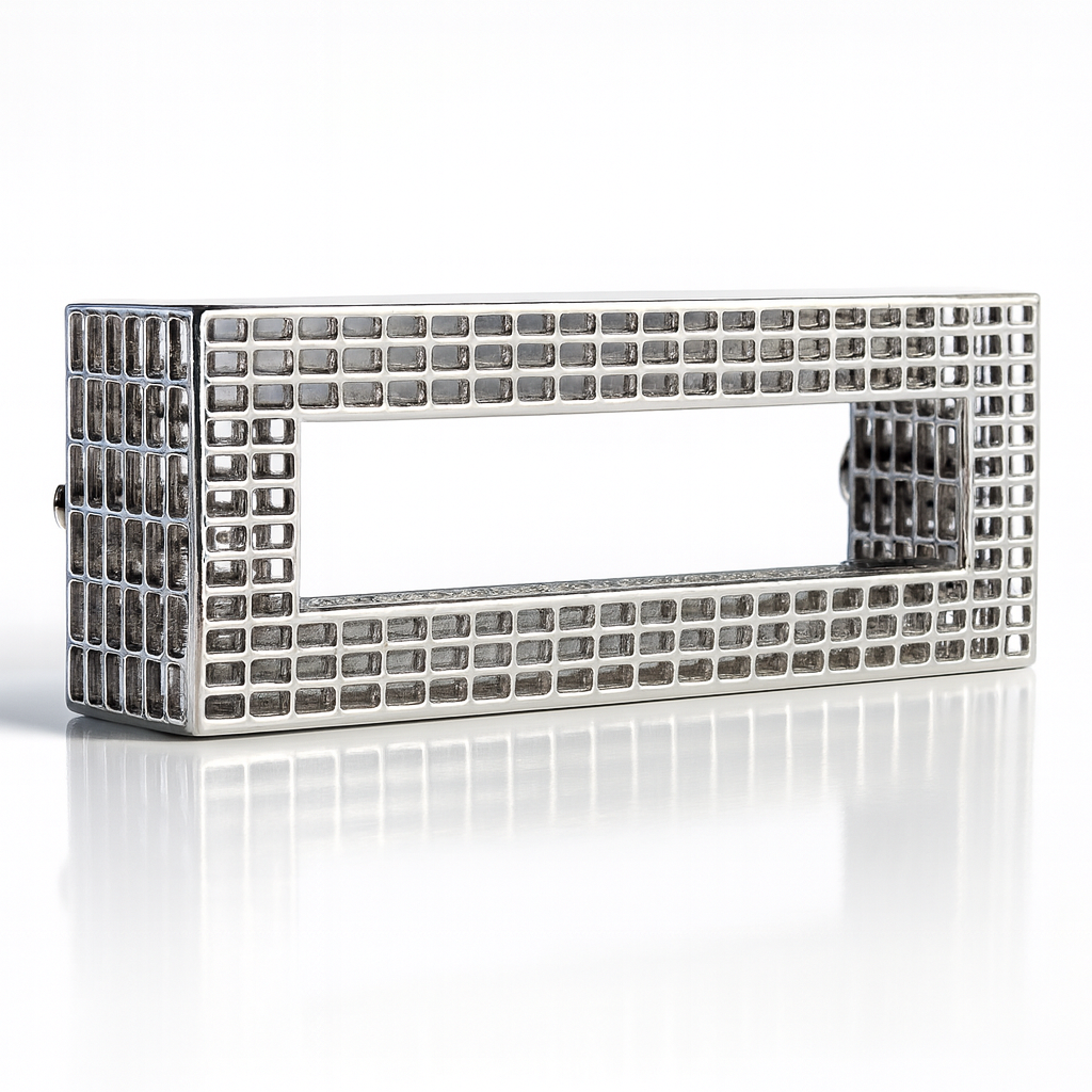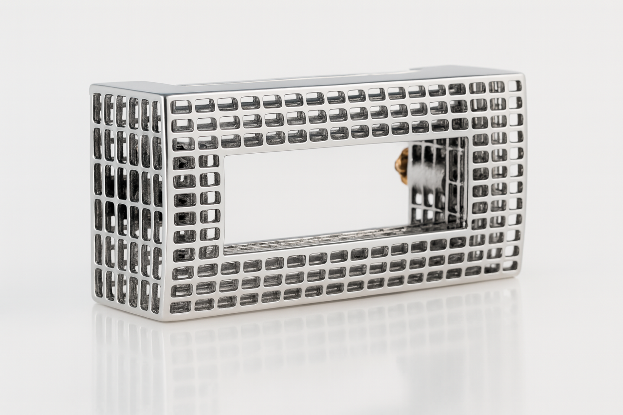 Il suo fascino risiede nella struttura a gabbia, un intreccio irregolare di pieni e vuoti che crea un effetto tridimensionale dinamico e raffinato. Una texture che gioca con la luce, permettendo di “vedere attraverso” la materia e rivelando lo stile inconfondibile della Reticube Technology®.