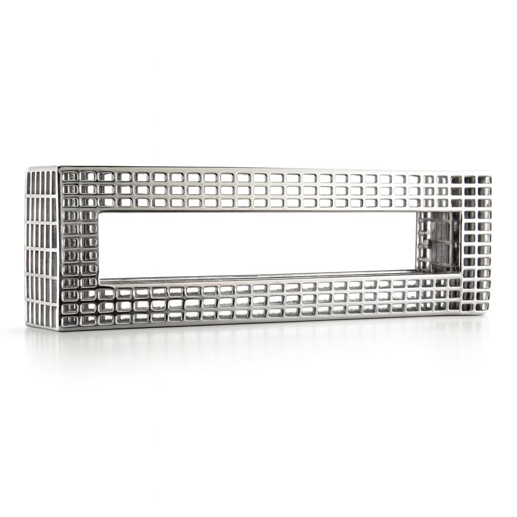 La 3D Net rappresenta la perfetta unione tra ricerca estetica, innovazione tecnologica e maestria artigianale. Realizzata in ottone con galvanica al cromo, è un prodotto 100% italiano, progettato e realizzato a Bologna da artigiani e designer locali.
