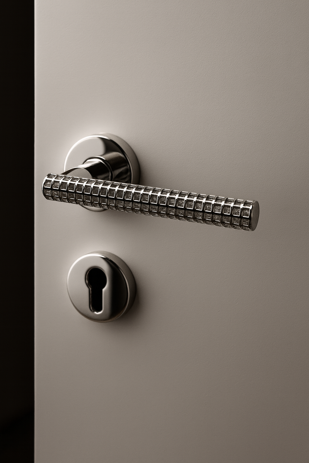 Realizzata in ottone cromato, la Dolce Vita 3D unisce solidità e brillantezza a un’estetica sofisticata. I sottosquadri della struttura permettono di intravedere la porta attraverso la maniglia, regalando un suggestivo effetto di trasparenza e profondità.