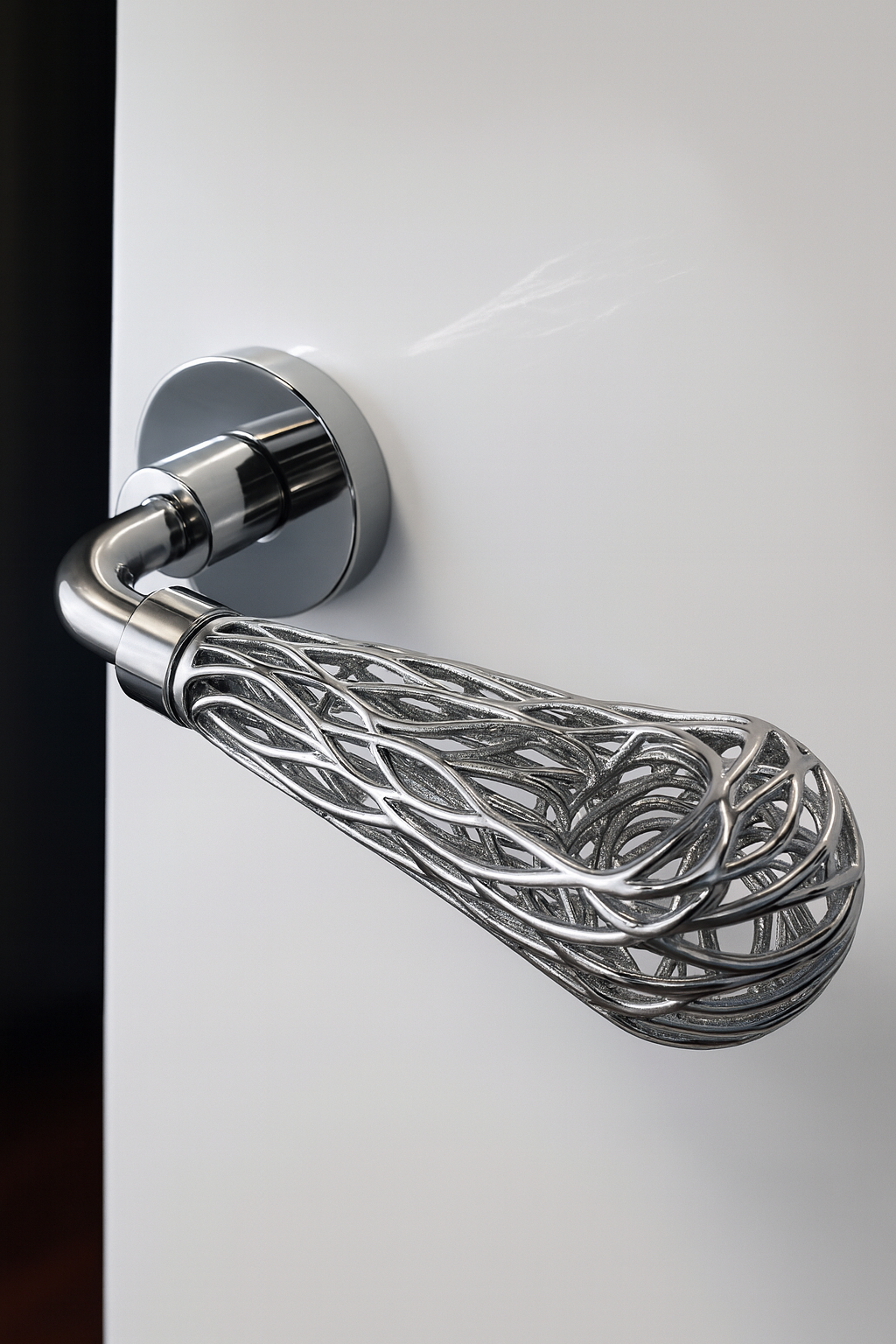 La maniglia Lolly 3D è un capolavoro di design contemporaneo, caratterizzato da un’impugnatura dal motivo intrecciato che richiama la naturale complessità delle foreste, fonte d’ispirazione del suo designer.